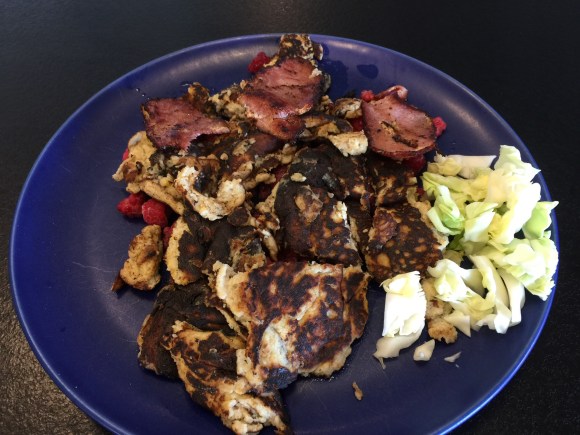 Dagens lunch biffar med bacon och svamp stek och min nu 7 dagar gamla sallad. Funkar fint ändå! Alla veckans salladsbaser färdiga. Kommer ätas som middag med grillad ryggbiff och en tomatsalsa på cashewnötter.
