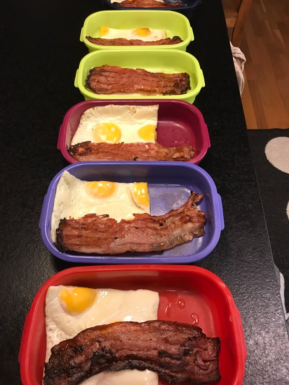 Gjort dagen innan 7 lådor ägg och bacon! Tjänar in minst 10min och slipper stå och steka i ottan!